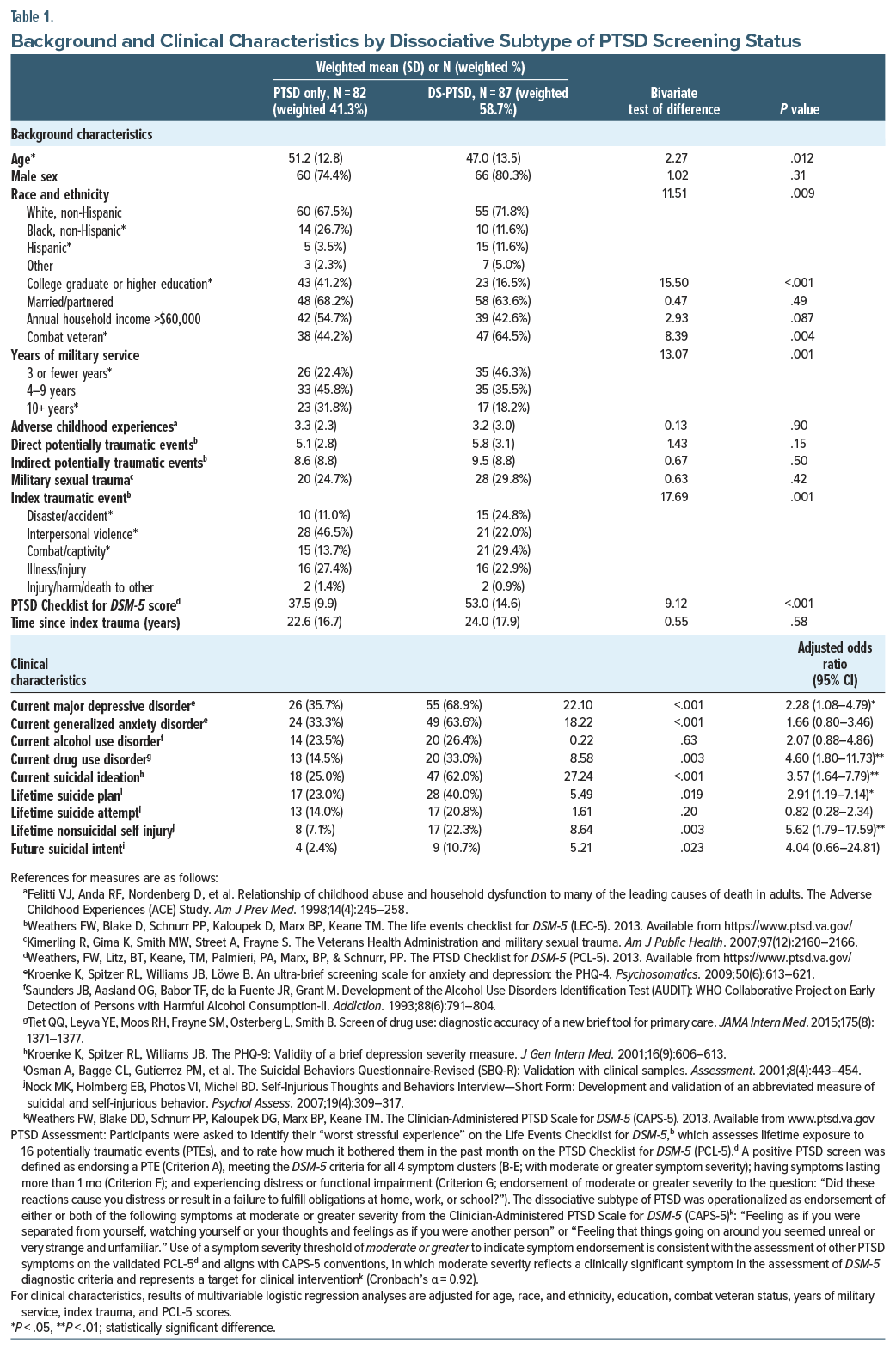 To Cite: Fogle BM, Fischer IC, Na PJ, et al. Dissociative subtype of posttraumatic stress disorder in US military veterans: prevalence, correlates, and clinical characteristics. J Clin Psychiatry 2026;87(1):25br15977.