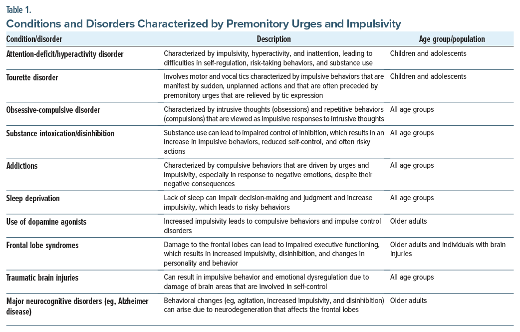 Which Psychiatric and Neuropsychiatric Conditions Are Characterized by Urges and Impulsive Acts?