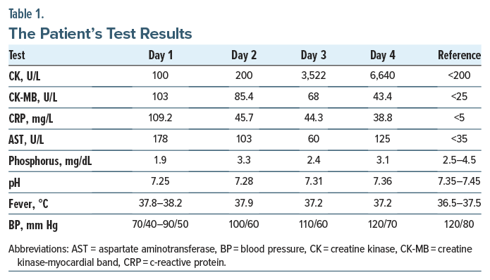 After 3 ECT sessions, the patient was found unresponsive, with hypotension (70/40 mm Hg), tachycardia (112 bpm), cyanosis, and confusion. His temperature ranged between 37.8°C (100.04°F) and 38.2°C (100.76°F). Arterial blood gas analysis showed a pH of 7.28 and oxygen saturation of 85%. Initial laboratory values and imaging ruled out infections or structural pathology. While early signs of muscle rigidity were absent, elevated creatine kinase levels were noted. Rigidity developed on the third day post-ECT discontinuation.