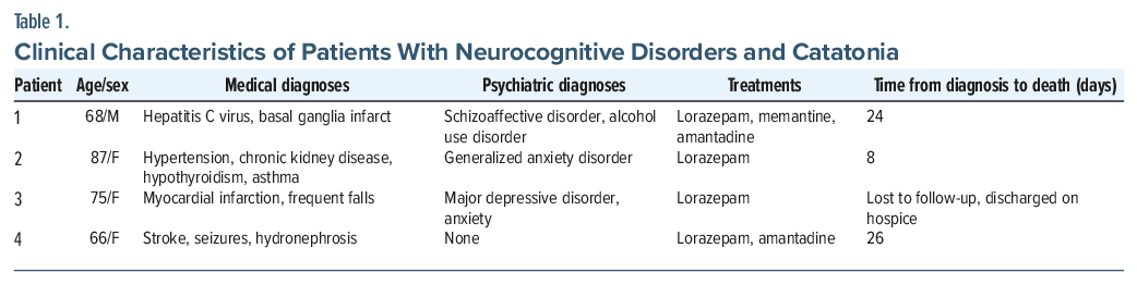 To Cite: Prognostic implications of catatonia in end-of-life care for patients with advanced neurocognitive disorder. Prim Care Companion CNS Disord. 2026;28(2):25lr04150.